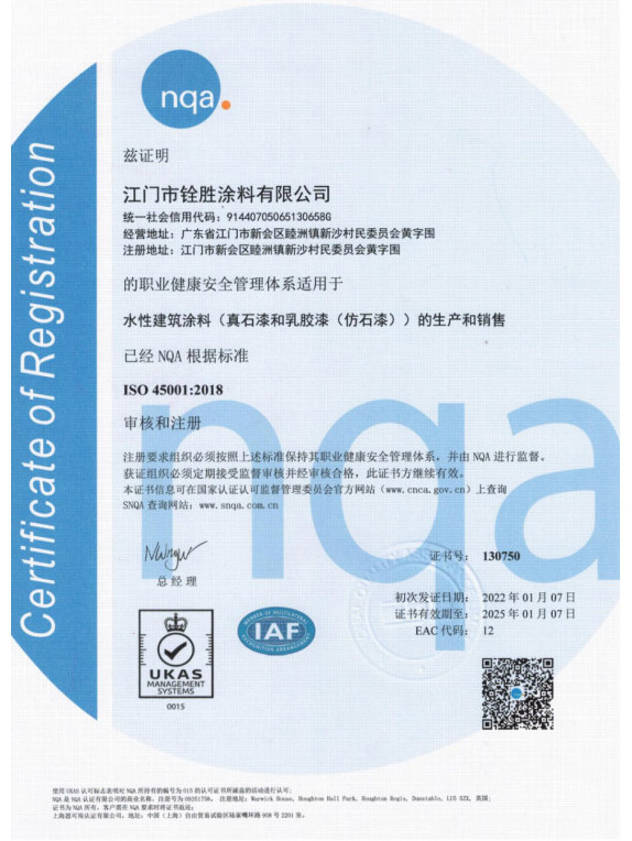 ISO 45001 2018證書(shū)