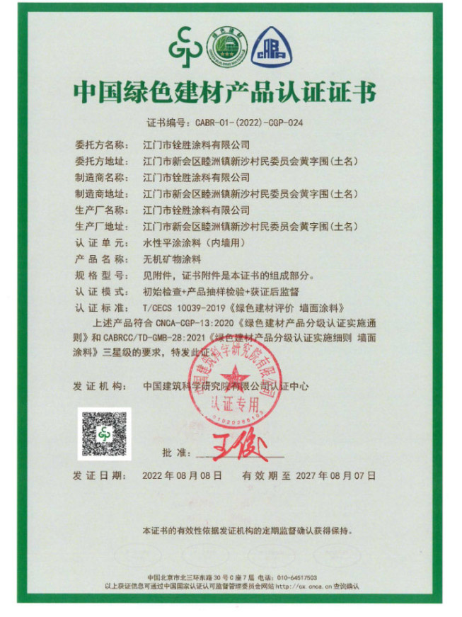 中國綠色建材產(chǎn)品認(rèn)證證書4