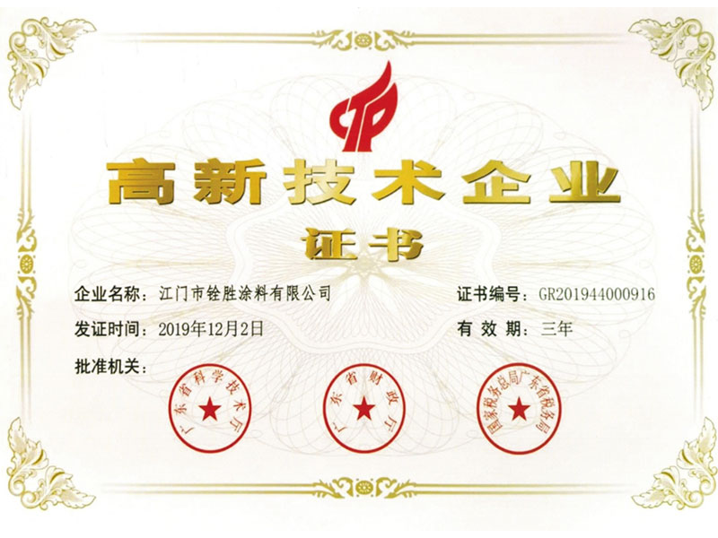 高新技術(shù)企業(yè)證書