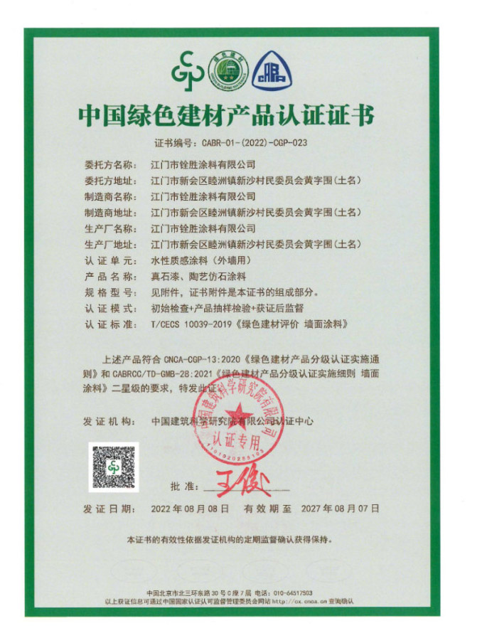 中國(guó)綠色建材產(chǎn)品認(rèn)證證書2